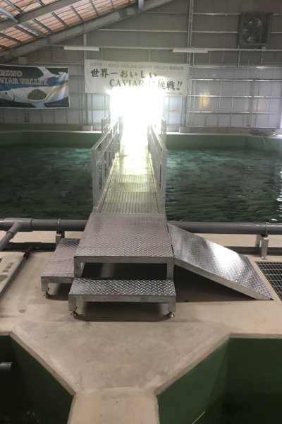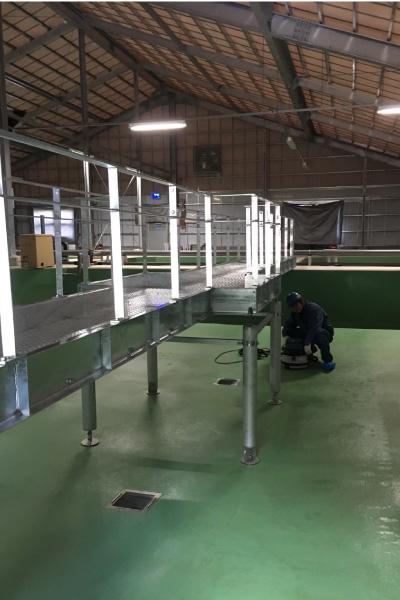 魚の養殖場に餌やりや清掃用に歩廊を設計・製作・設置
