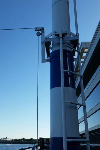 浜名湖競艇場場内にある浮き島に下りるために桟橋とスタートフラッグ用のポールを設置いたしました。