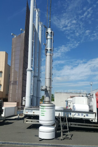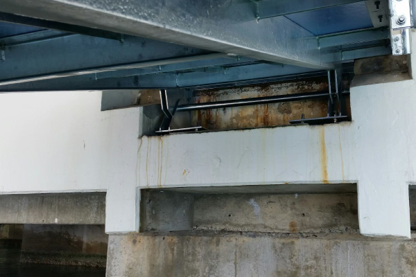 上部についていた既存の架台にアイビームを流し、トロリーで海上に送り出す施工方法で実施しましたが、最も簡単で安全な方法だったと思います。