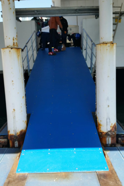撤去・設置共に海上での作業なので鋼材はもちろん、ボルトや工具などを落とさないように最新の注意と準備で施工いたしました。