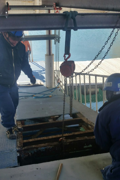 両工事共に海上での作業になるので撤去・設置時は常に周囲に気をくばりながらの作業でした。