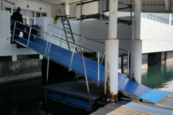 浜名湖競艇場内の浮き島に下りるための桟橋とスタートフラッグ用のポールを製作・既存撤去・設置